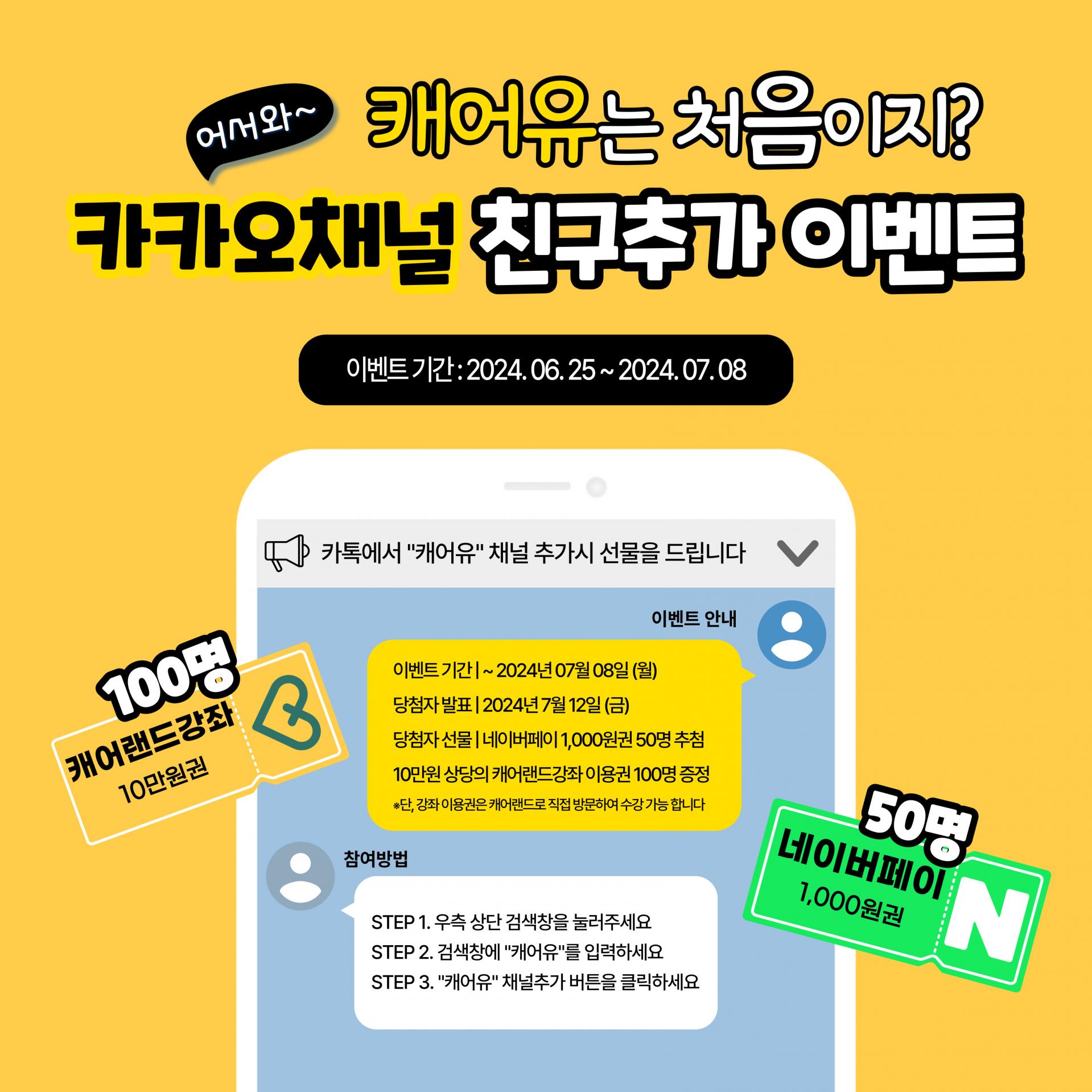 📢캐어유 카카오채널 친구추가 이벤트📢