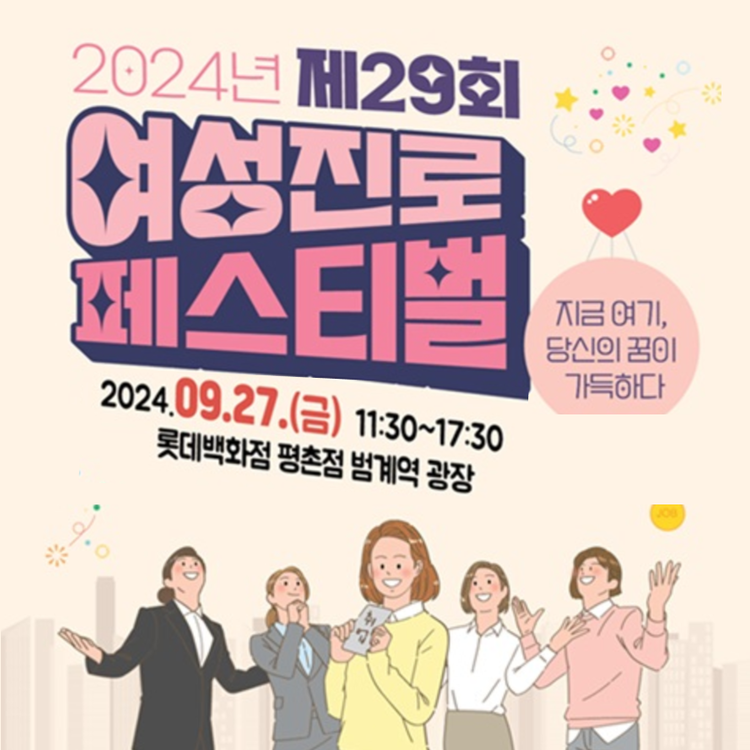 "여성들이 자신의 꿈을 이루고 취업 성공의 길을 열기를 바라는 마음으로 준비한 제29회 여성진로페스티벌에 많은 참여 부탁드립니다"