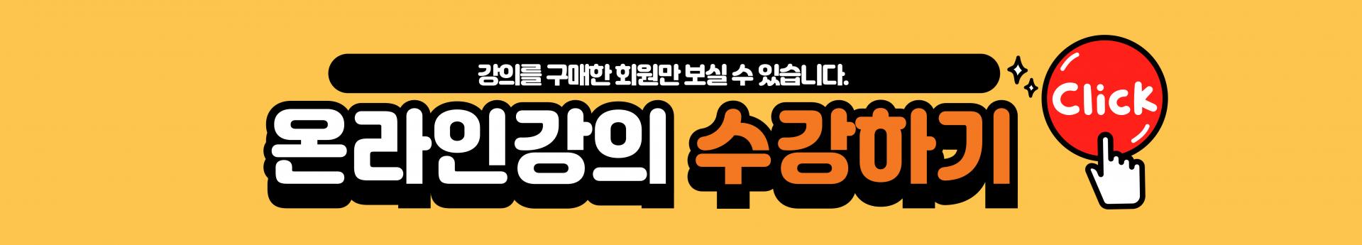 내강의실에 접속하셔서 마이페이지 내 상품명을 클릭하시거나, 상품페이지에서 수강하기 버튼을 누르면 구매한 회원에 한해 강의를 수강하실 수 있는 페이지로 연결됩니다.